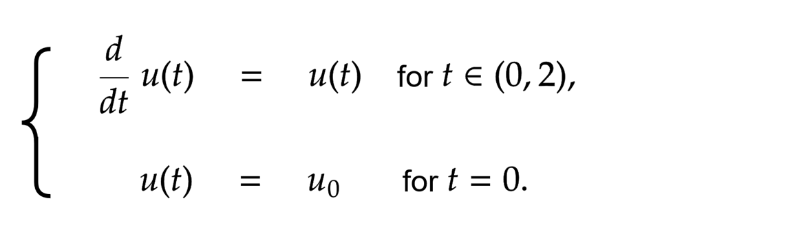 Part A) One of the simplest examples for the beginning is learning the exponential function, which solves the ODE depicted on the right. Click here to open the Jupyter Notebook. It contains: